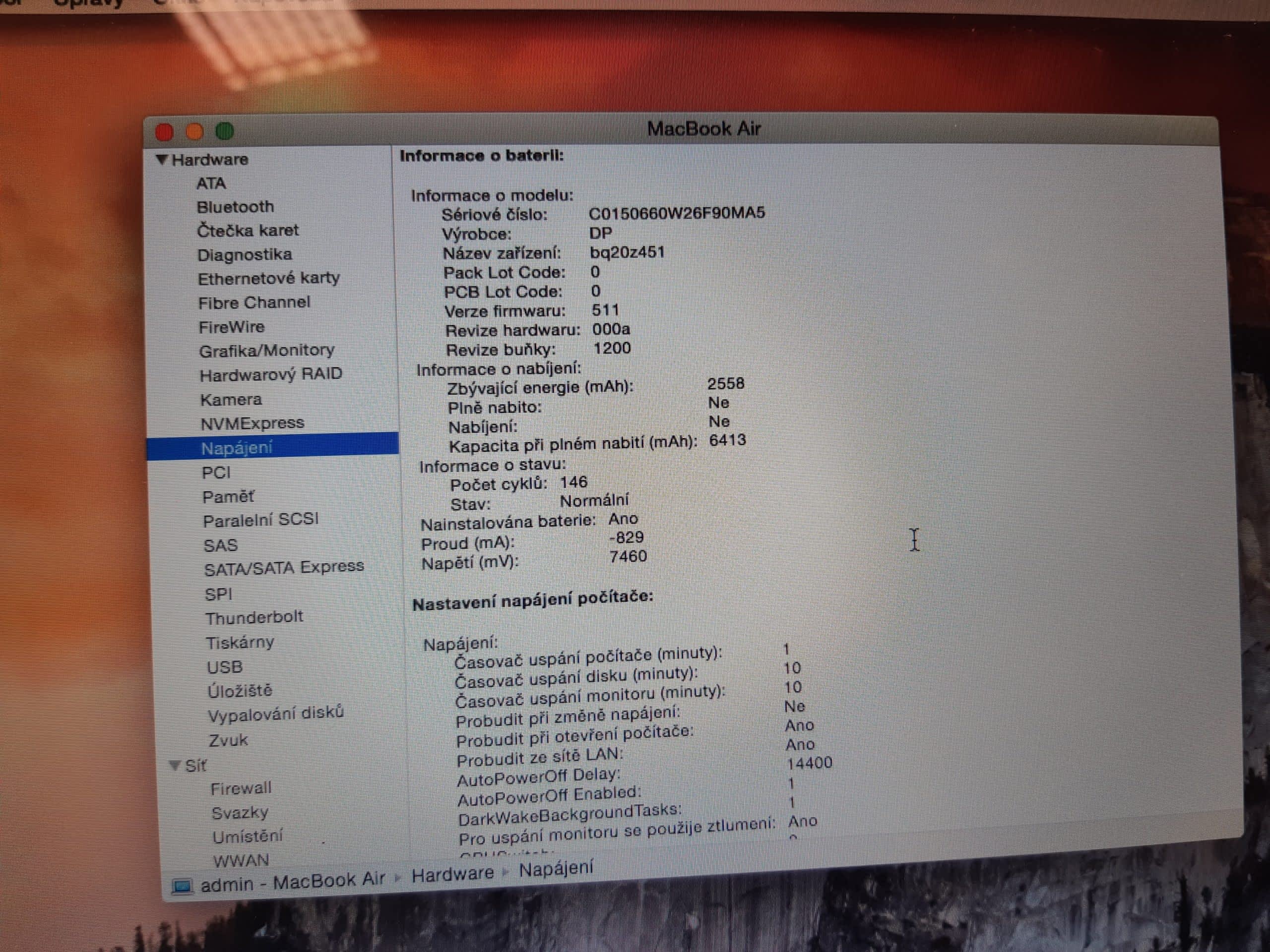 MacBook Air, začátek roku 2015, Core i5 1,6GB, 4GB RAM, 128GB úložiště. Baterie 143 cyklů. Notebook je jakjo nový, pouze malý flíček na zádech. K notebboku je nabíječka a brašna. Notebook je jako nový.