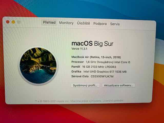 Prodám MacBook Air listopad 2018, Corei5, 512 GB, 16G RAM, 134 cyklů. Výborný stav.