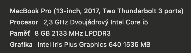 Prodám Macbook Pro 13" 128GB Space grey, i5, 2,3Ghz, paměť 8GB.