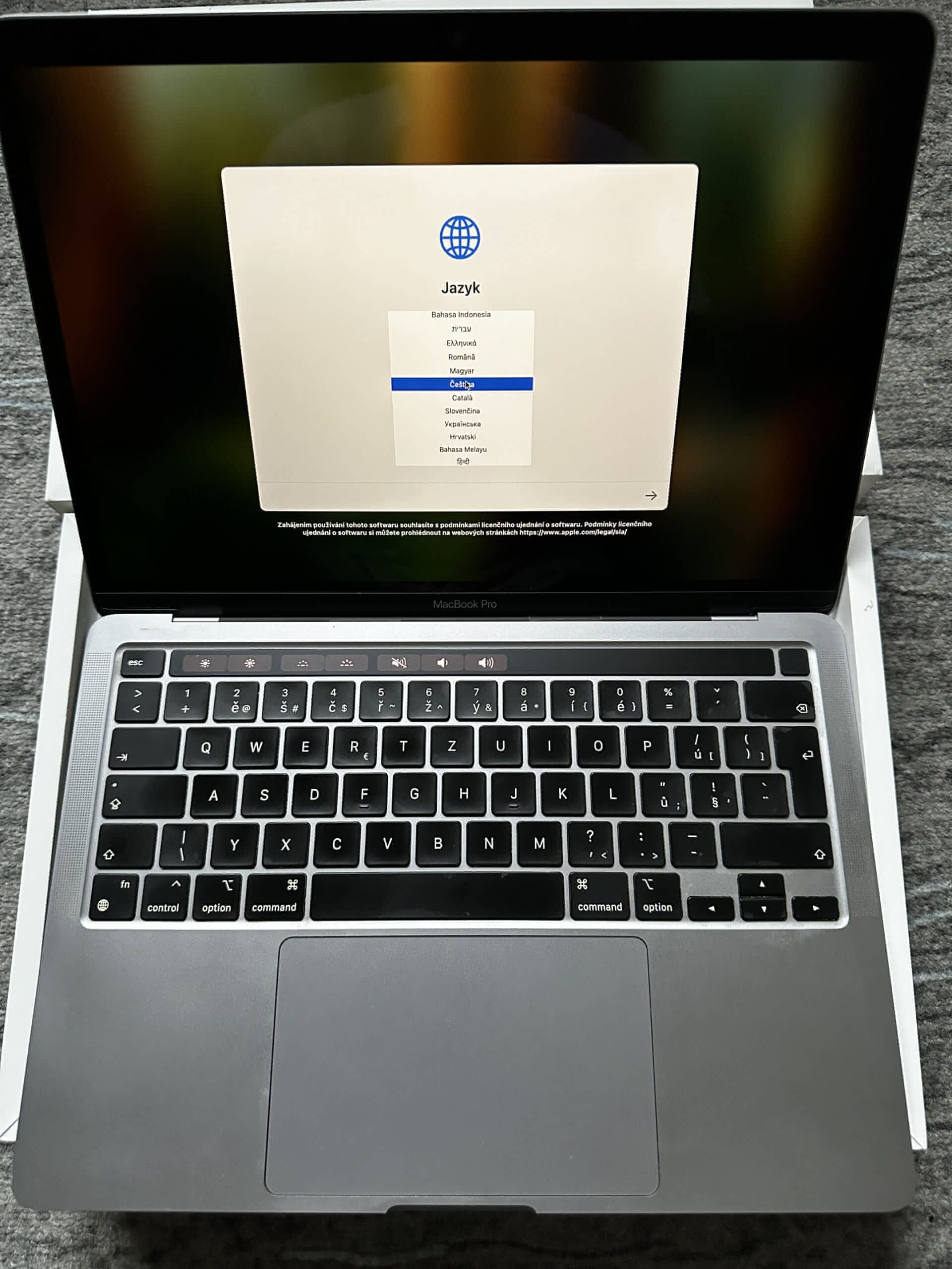 MacBook má drobný problém s občasným problikáváním Touch Baru – 2/3 Touch Baru bíle problikne, většinou při zapínání systému. Displej je bez škrábanců. Jinak bez mechanického poškození a ve výborném stavu.