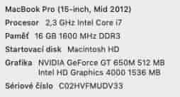 Prodám MacBook Pro 15” Mid 2012, Intel Core i7 2.3GHz 4jádrovy, 16GB RAM, 2x 512GB SSD