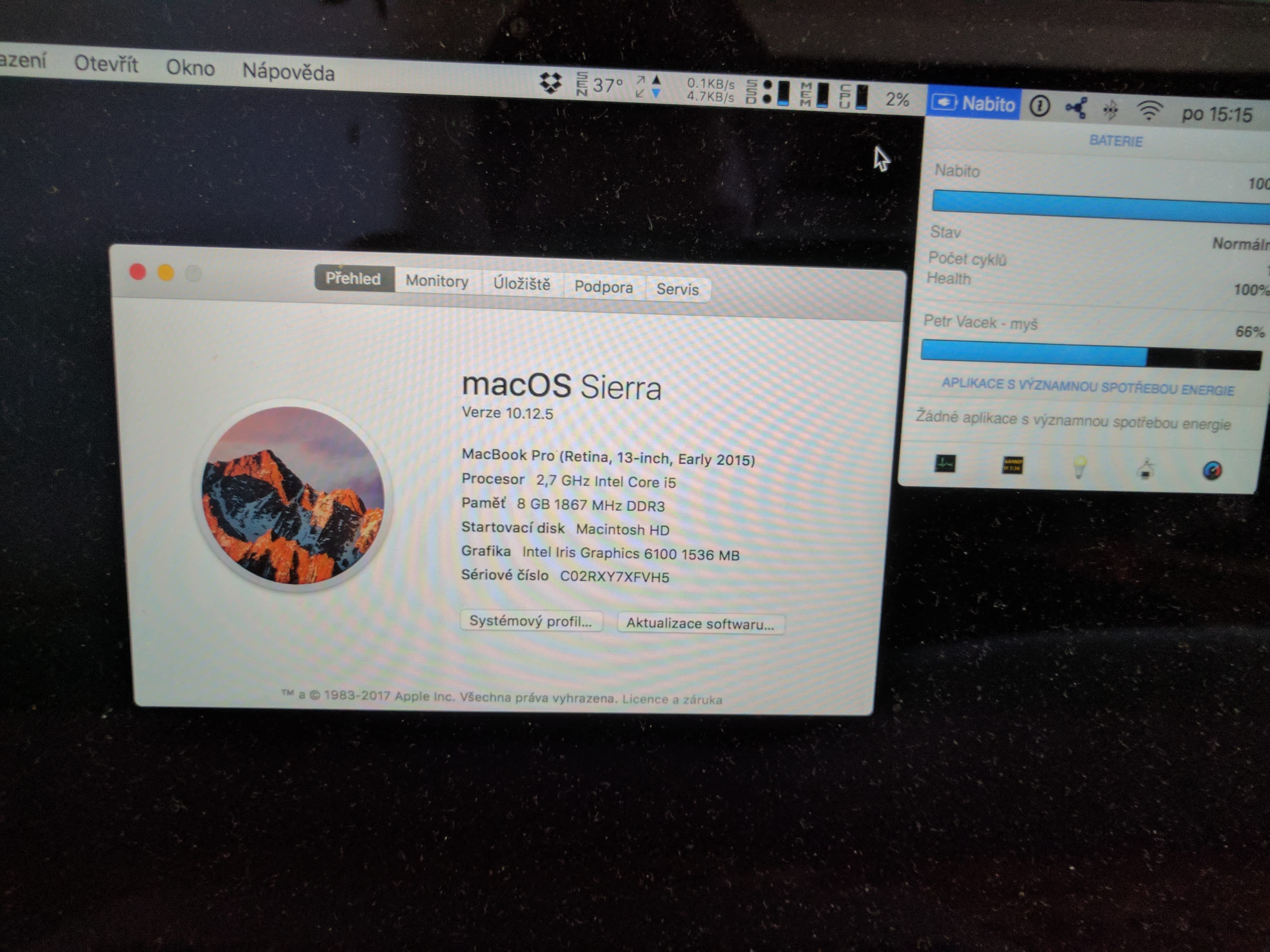 Prodám Macbook Pro 2015 13 Nový stroj. Prodám Macbook Pro 2015 13" Bez (i5 2,7GHz, 8GB ram, 256GB SSD) v barvě Silver. Macbook je nový. Bez škrábanců. Baterie 1 cykls. Záruka u CZC ještě 1,5 roku. Stav nového stroje. Kompletní balení. Pouze prodej!!!!!