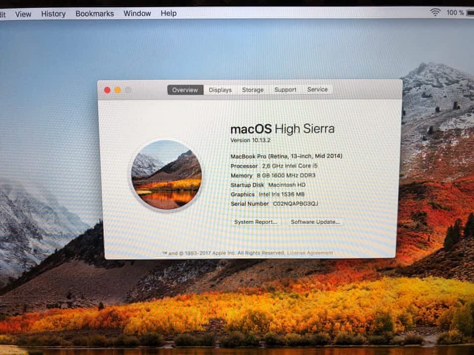 Apple MacBook Pro RETINA 13" rok 2014, i5 2,6 GHz, 8GB ram, 256GB SSD. Grafická karta: Intel Iris 1536MB. OSOBNÍ ODBĚR PRAHA. Baterie: 550 cyklů (85% původní kapacity). Záruka 12. měsíců. Nabíječka: Apple MagSafe 2 60W. OSX High Sierra. Top stav.