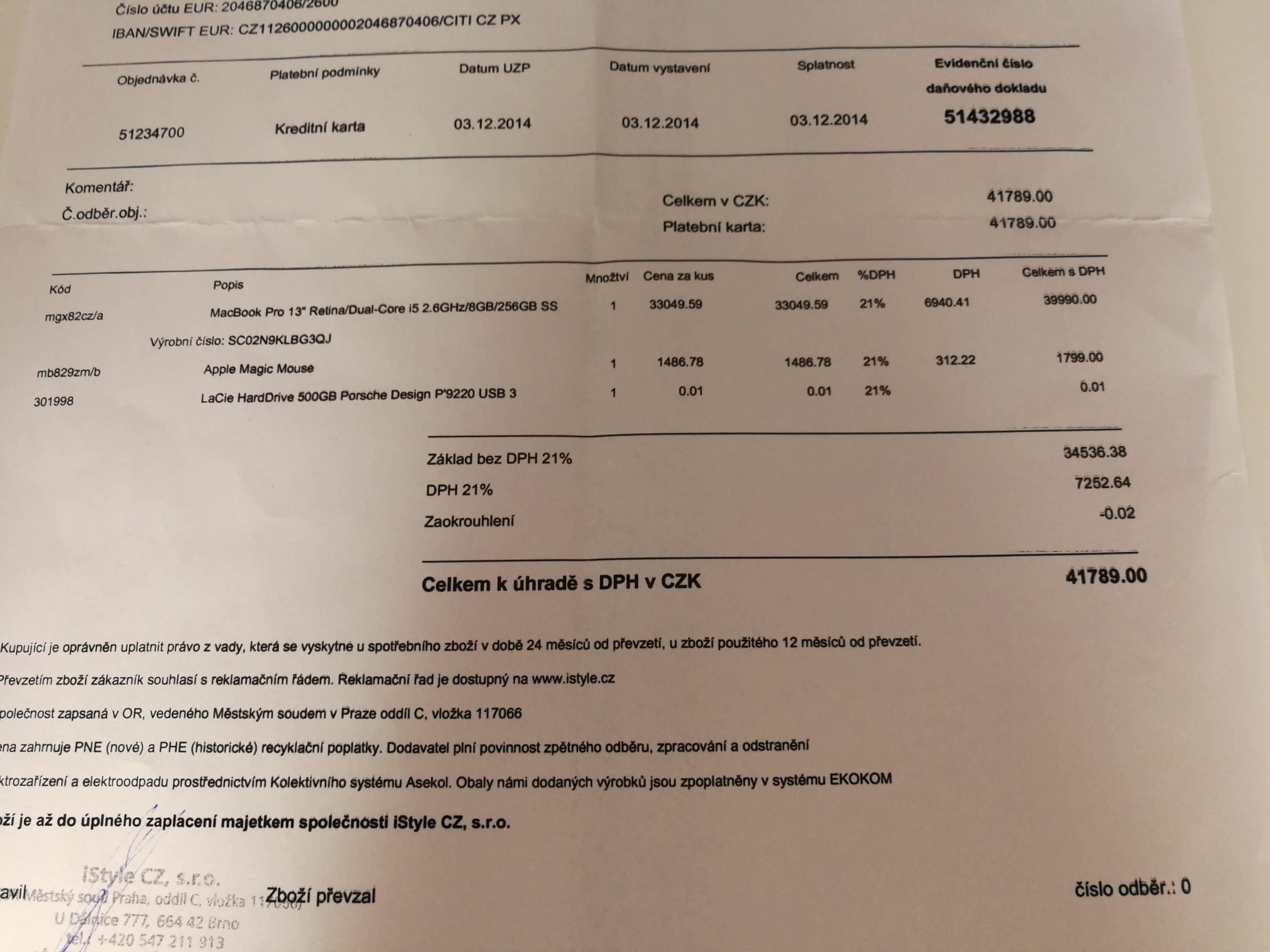 Kompletní balení, bez škrábanců, zakoupený v iStyle Brno 3.12. 2014 (již bez záruky). Pořizovací cena byla 40.000,-