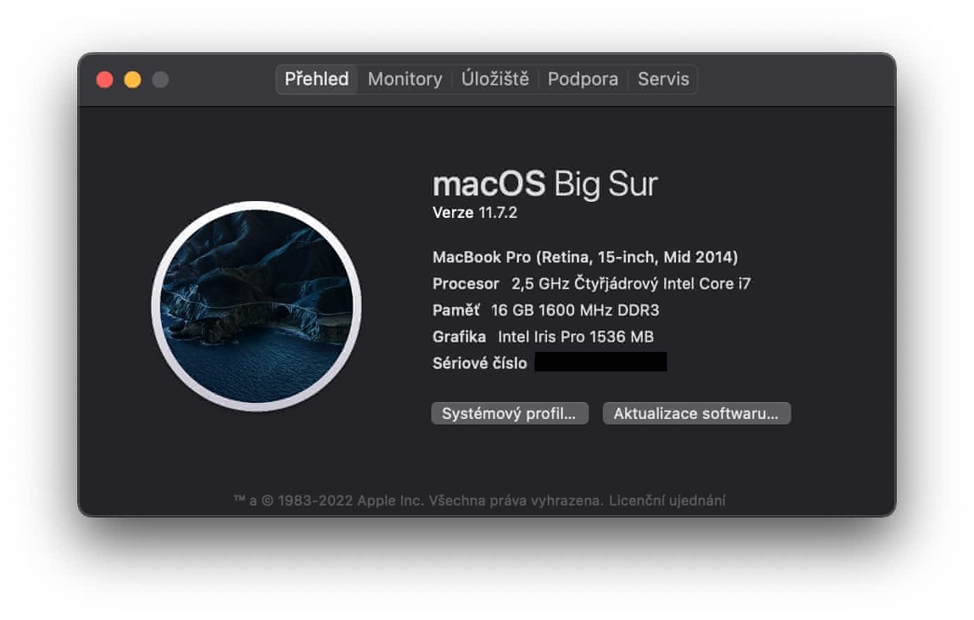 nabízím k prodeji Macbook Pro Retina 15-inch, Mid 2014 i7 2,5GHz 16GB RAM 500GB SSD, MacOS Big Sur 11.7.2. Má dvě grafické karty – NVIDIA GeForce GT 750M se 2 GB dedikované GDDR5 paměti a integrovanou Intel Iris Pro 5200. Má novou baterii, nějaké ty známky používání, ale nic dramatického, vypadá pořád krásně. Bohužel musel vyklidit místo MBP16" M1 takže už jen leží a čeká na nového majitele 😉