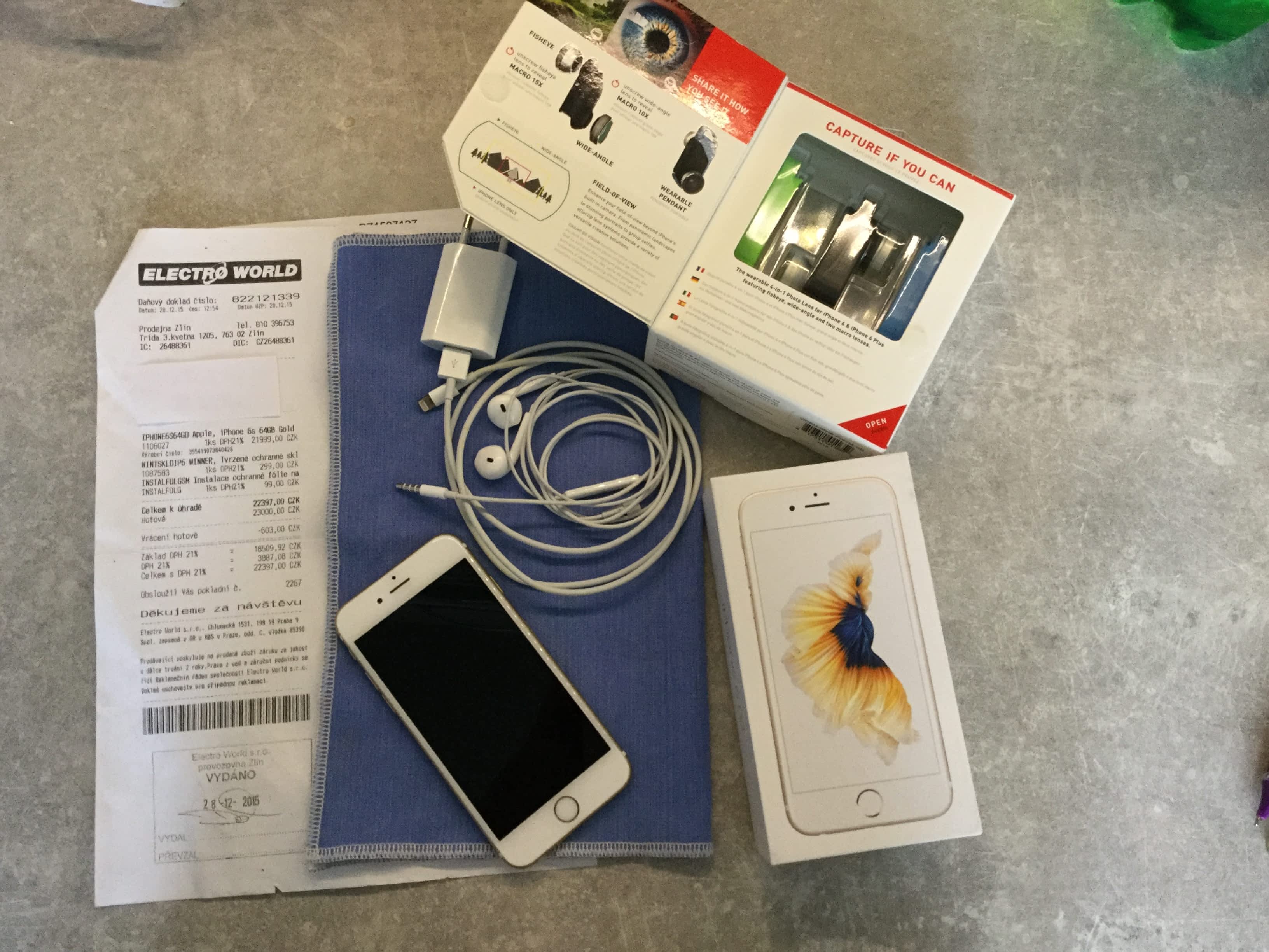 Prodám velmi pěkný iPhone 6S Gold, 64 GB, vc. novych optickych objektivu na iphone 6/6+, 6s,.. a doživotního ochranného skla. Záruka do konce prosince 2017. Důvod prodeje je koupě nového modelu.