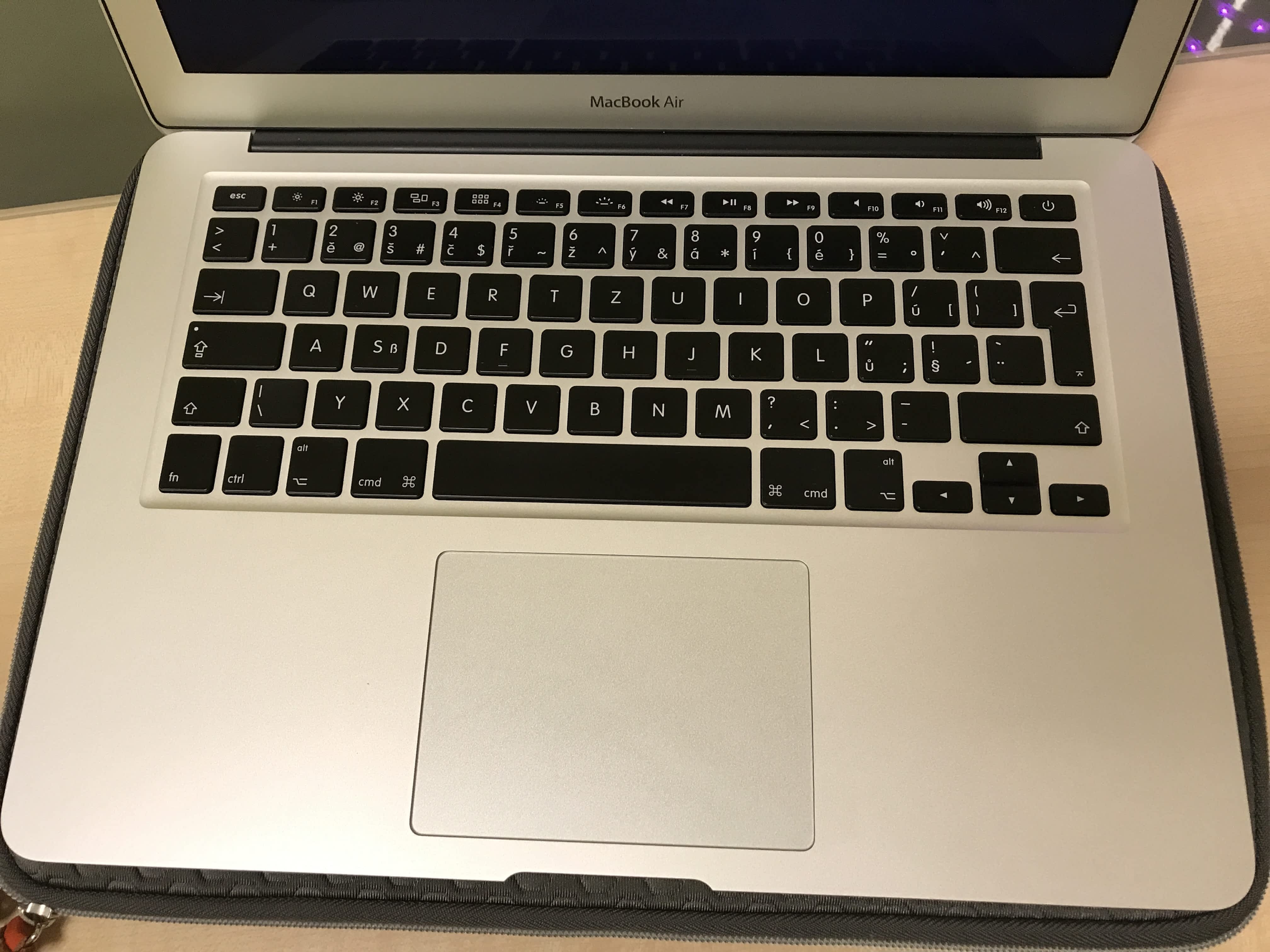 MacBook je nošen a přenášen výhradně vždy v neoprenovém pouzdře.
