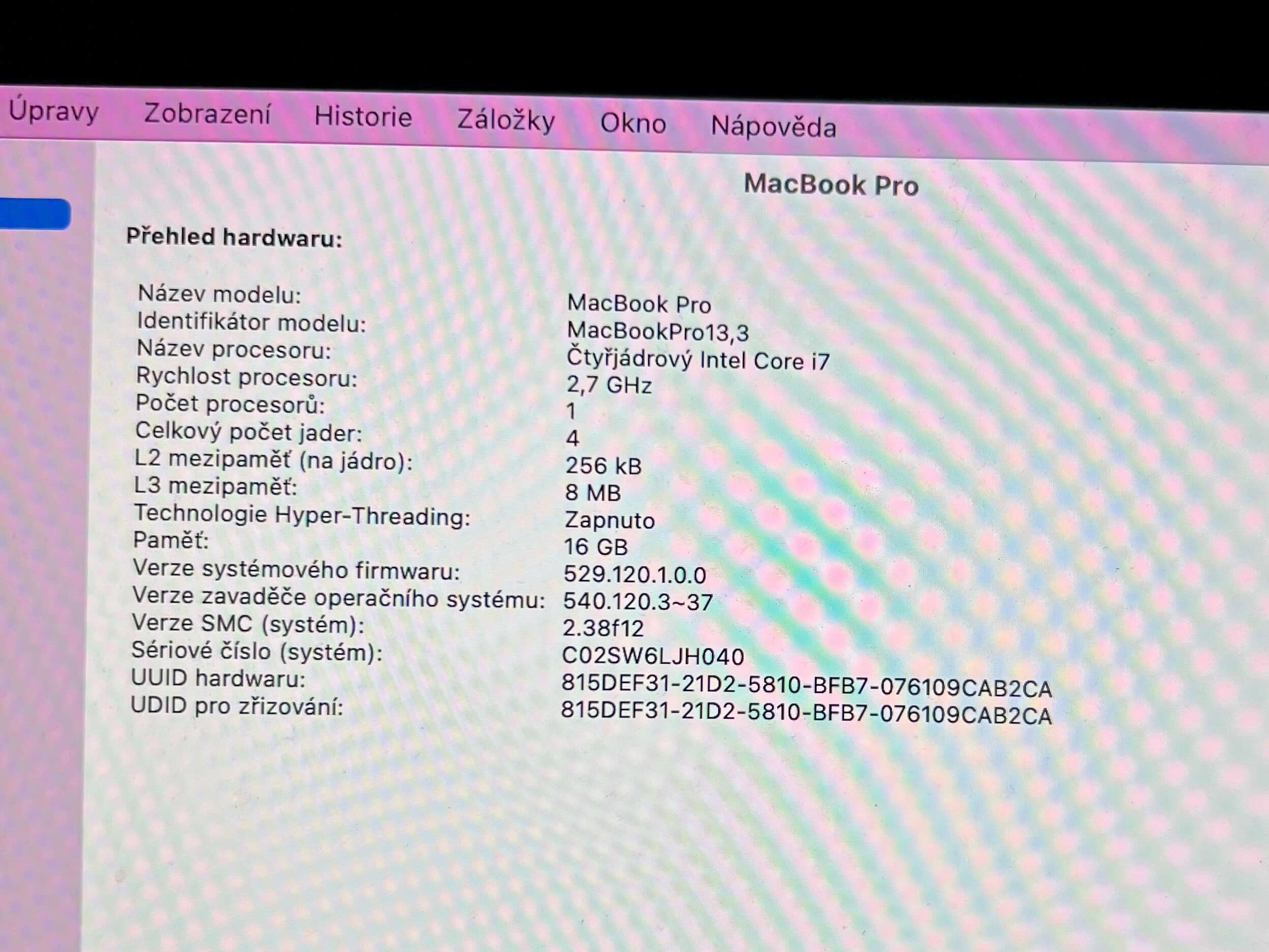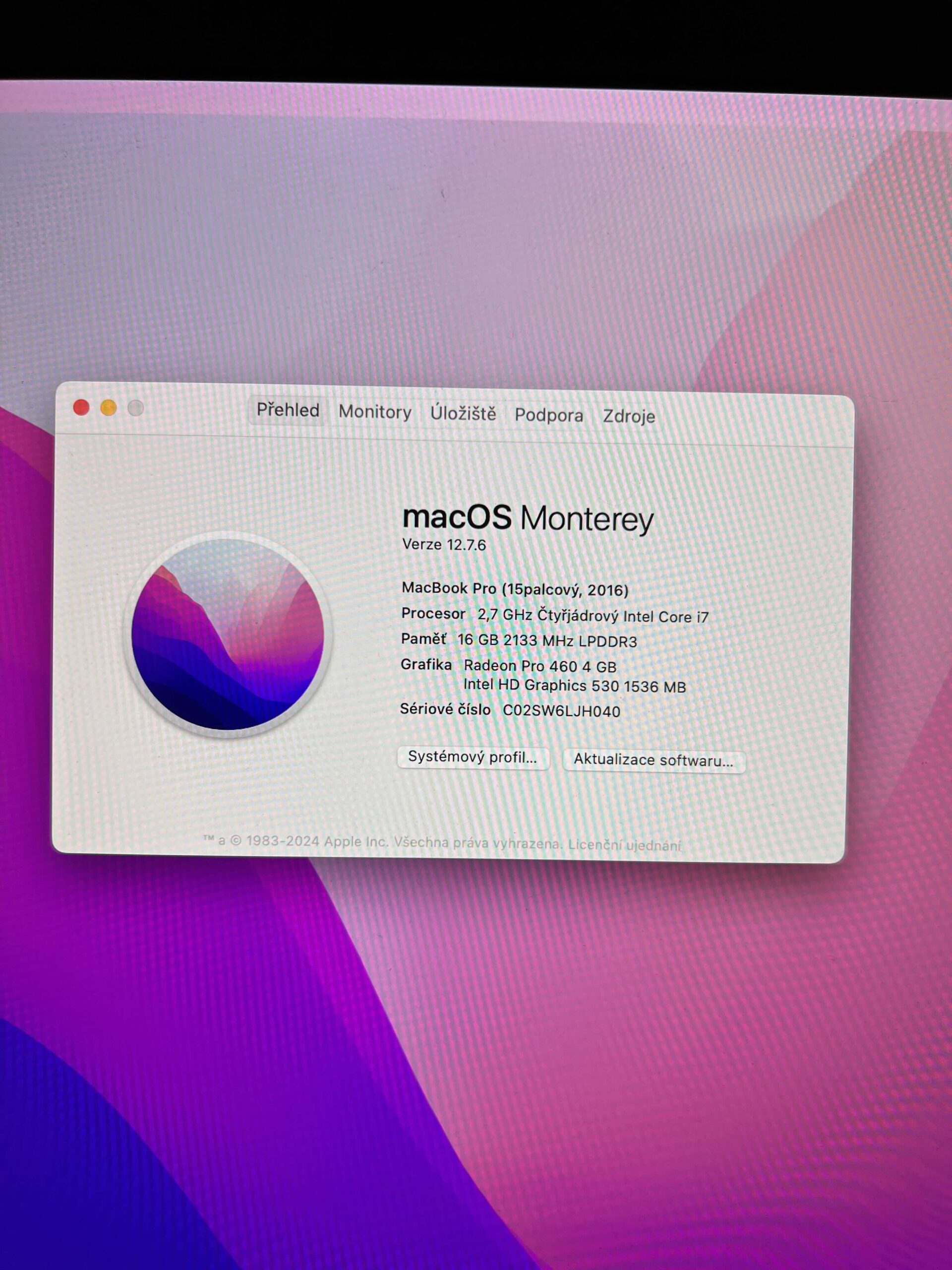 Prodám Mac Book Pro 2,7 GHz, čtyřjádro, Intel Core i7 , Paměť 16 GB, SSD disk 512 GB, touch bar, čtečka.