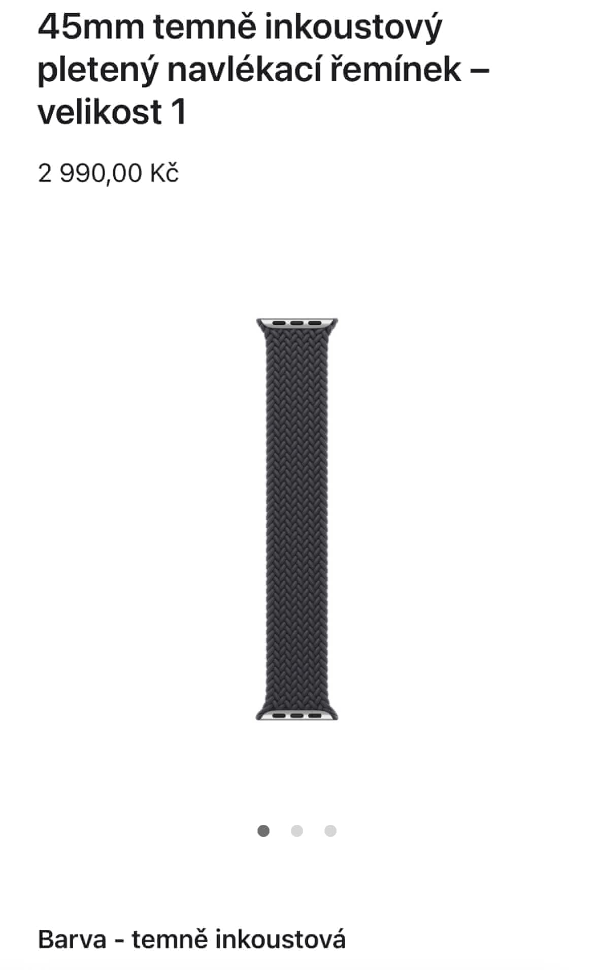 Prodám 45mm temně inkoustový navlékací řemínek velikosti 9, který byl dodán s novými Apple Watch v nevhodně zvolené velikosti. Náramek je nepoužitý, pouze vyzkoušený. Řemínek je dostupný v Ostravě k osobnímu předání, popřípadě bude zaslán přes Uloženku.