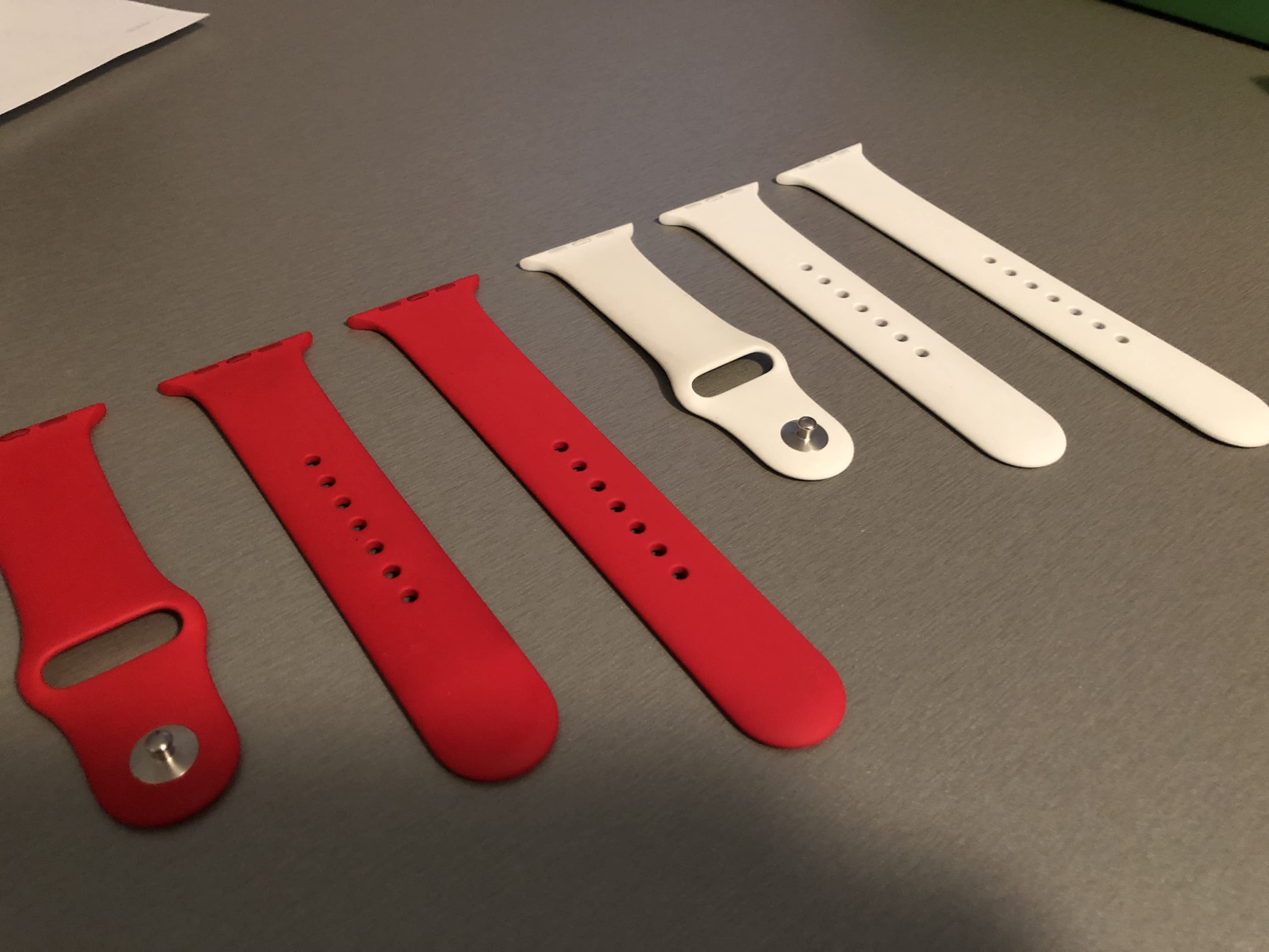 K červenému original krabička u bíleho bez balení. K řemínkům je jak velikost