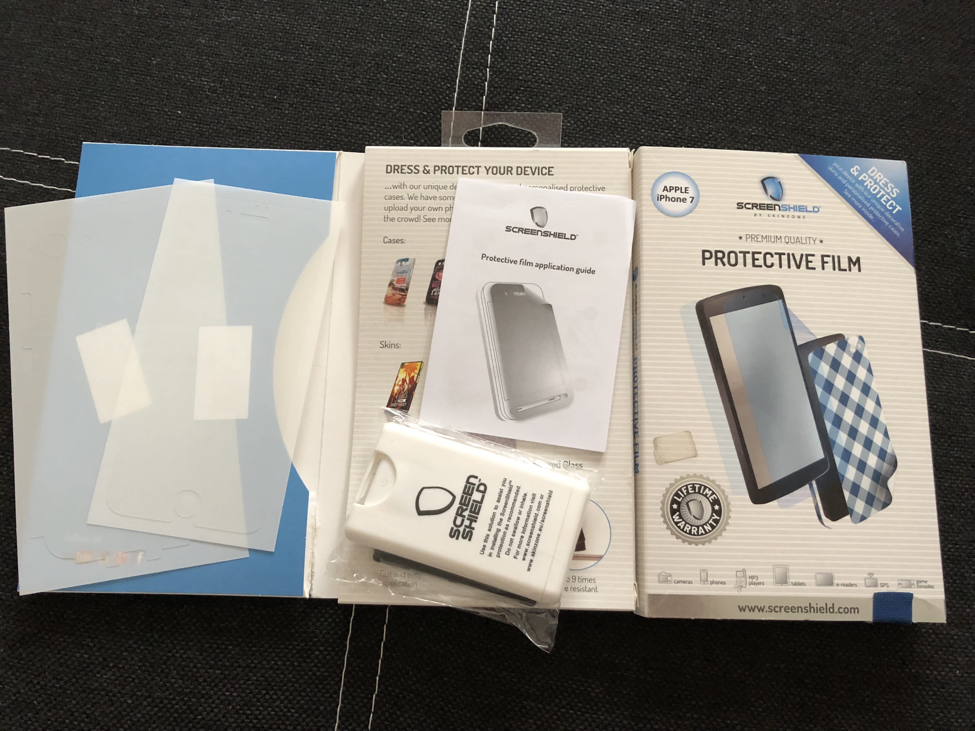 Prodám úplně nový Screenshield(česká firma-stejné děla ZAGG jen dražší) pro iPhone 7, speciální folie s doživotní zárukou. Používám již několik let. Teď ji mám na X. Folie kryje předek, zadek i rámeček z části dookola. Snadná aplikace. Původní cena 570kc(490+80postovne). Předání osobně Valašské Meziříčí .