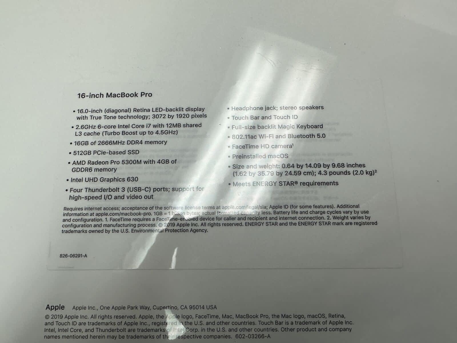 Features:Full-size backlit Magic Keyboard, Widescreen Display, Retina Display, The latest version of macOS, Apple Pay, Touch Bar, Touch ID, Force Touch Trackpad