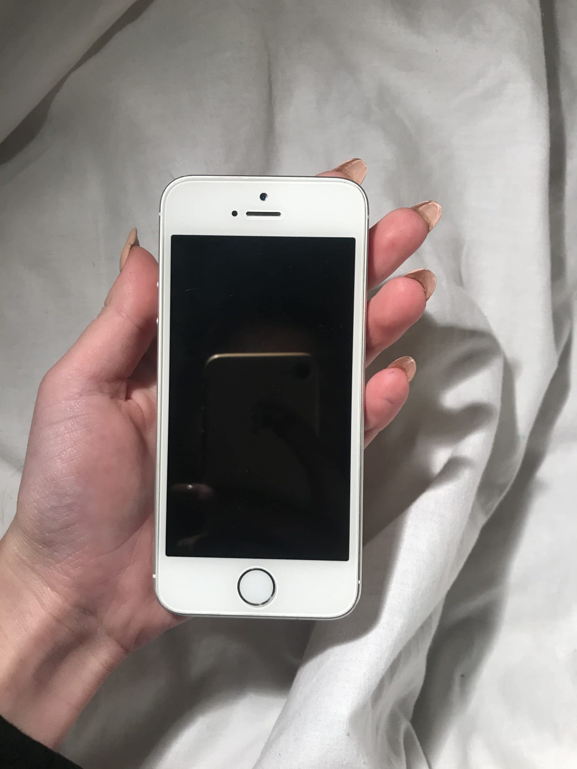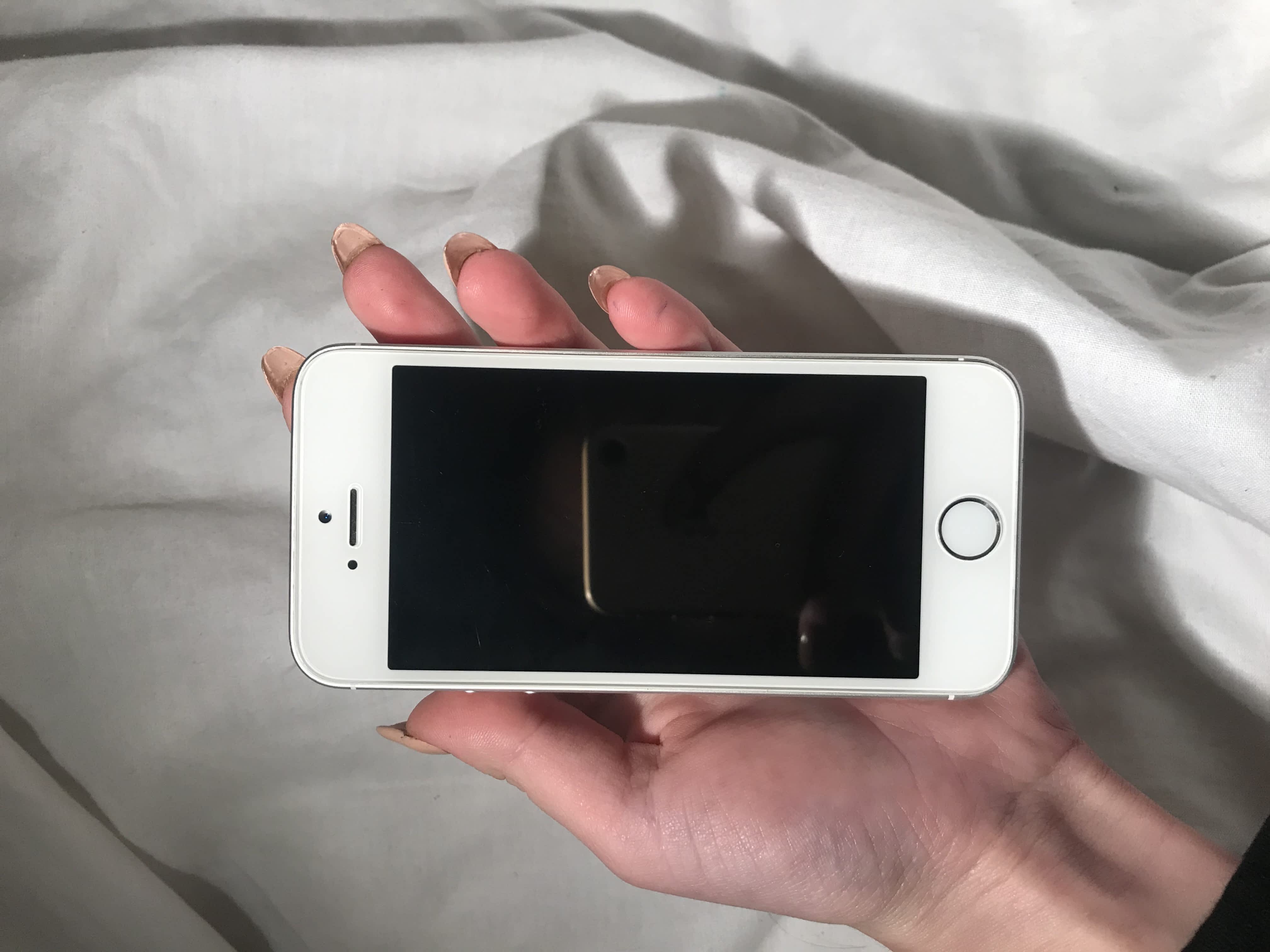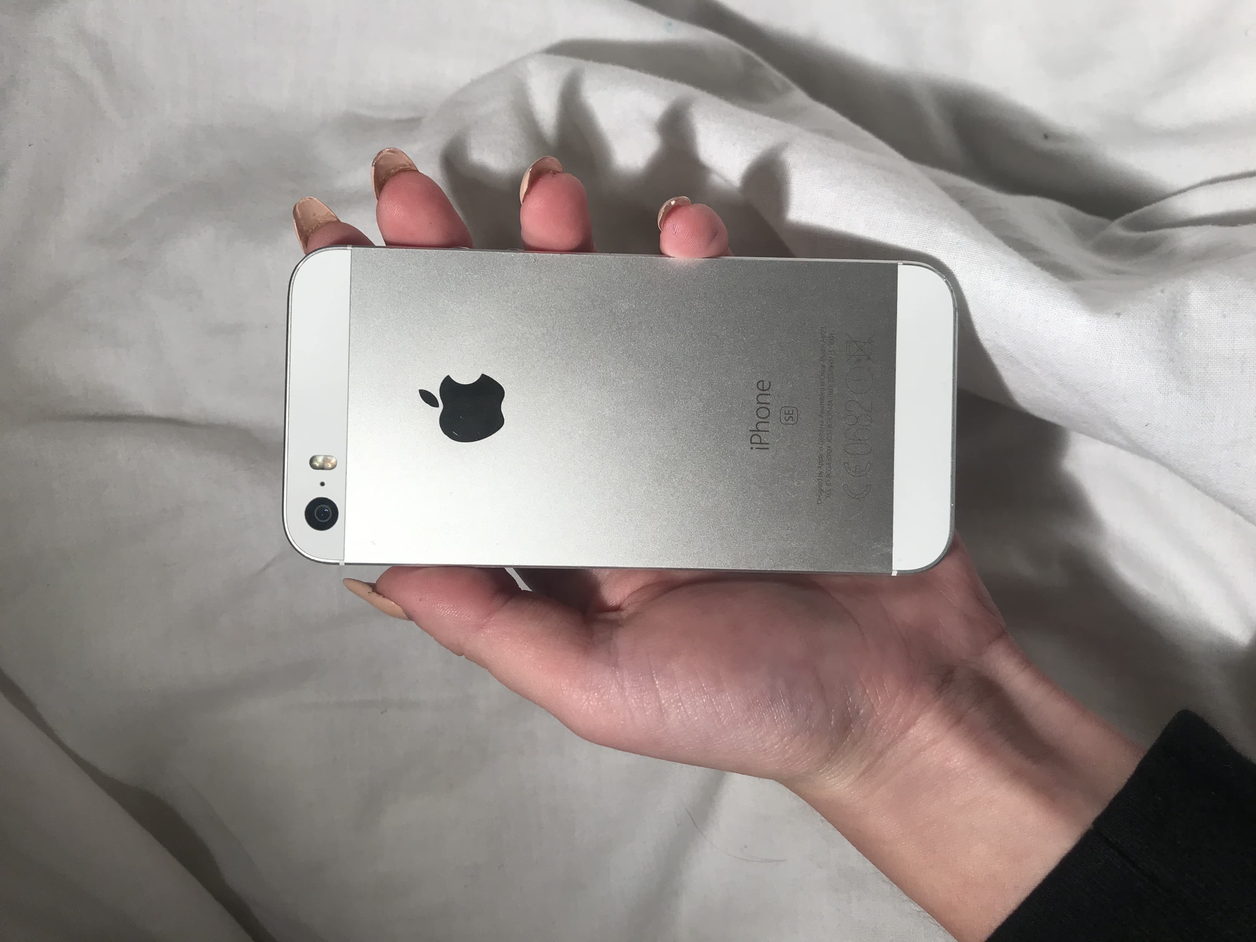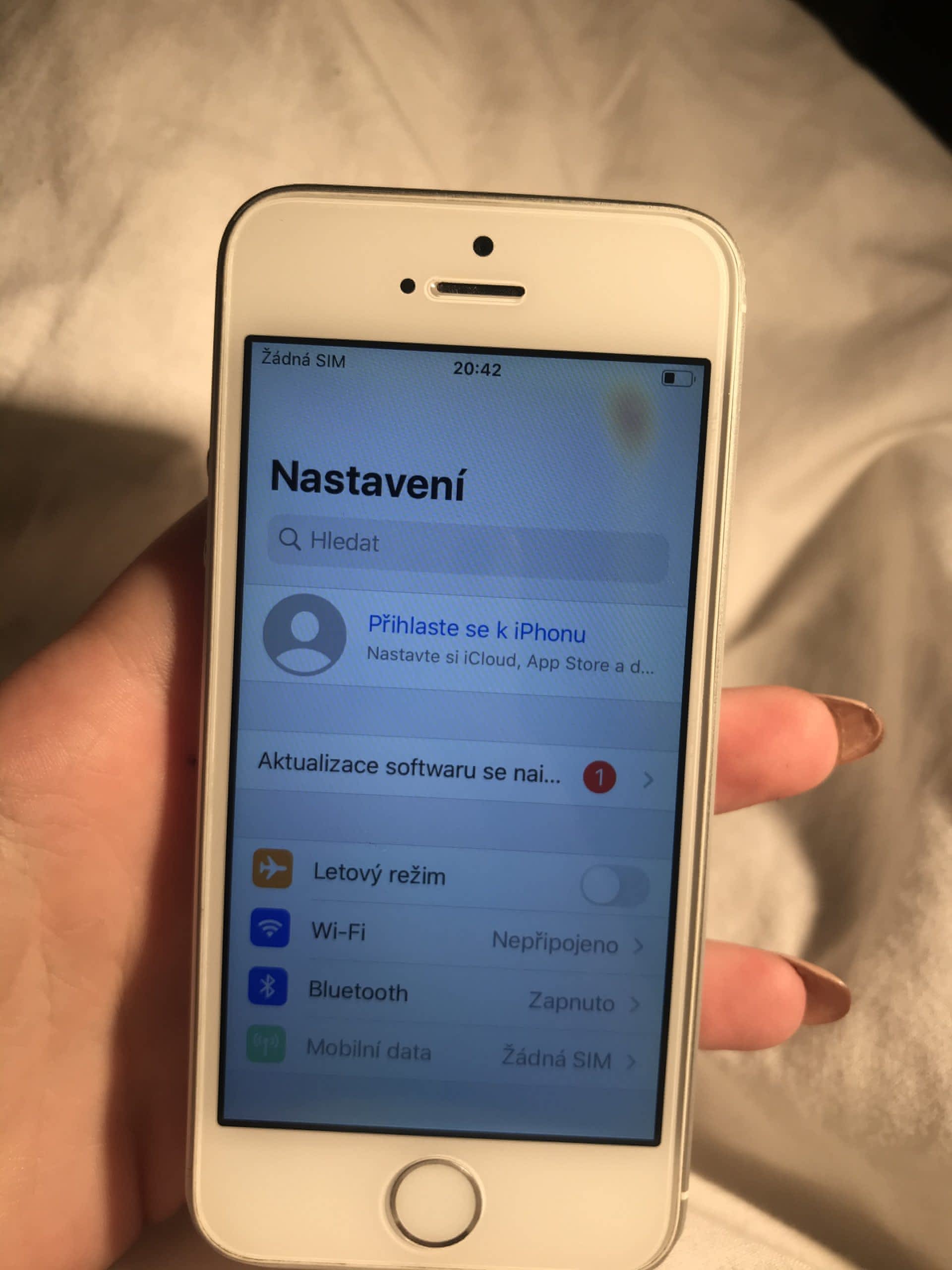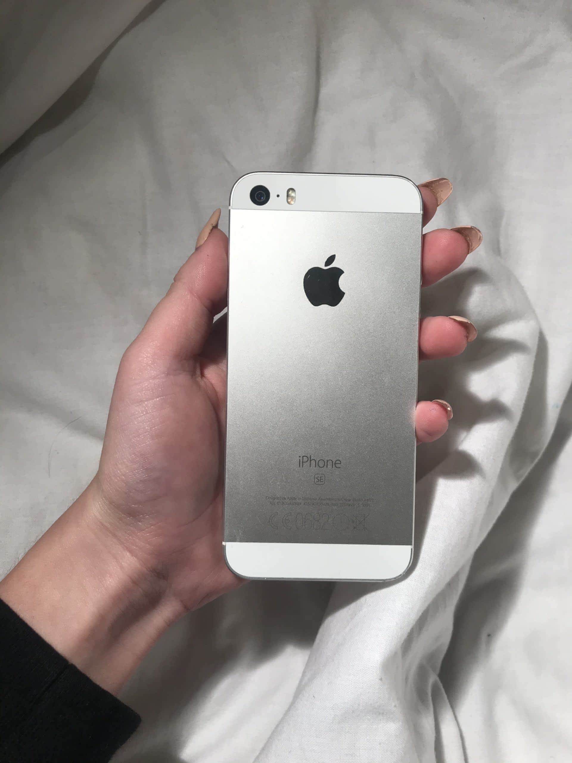 iPhone 5 SE, plně funkční, v pravém horním rohu oranžová tečka