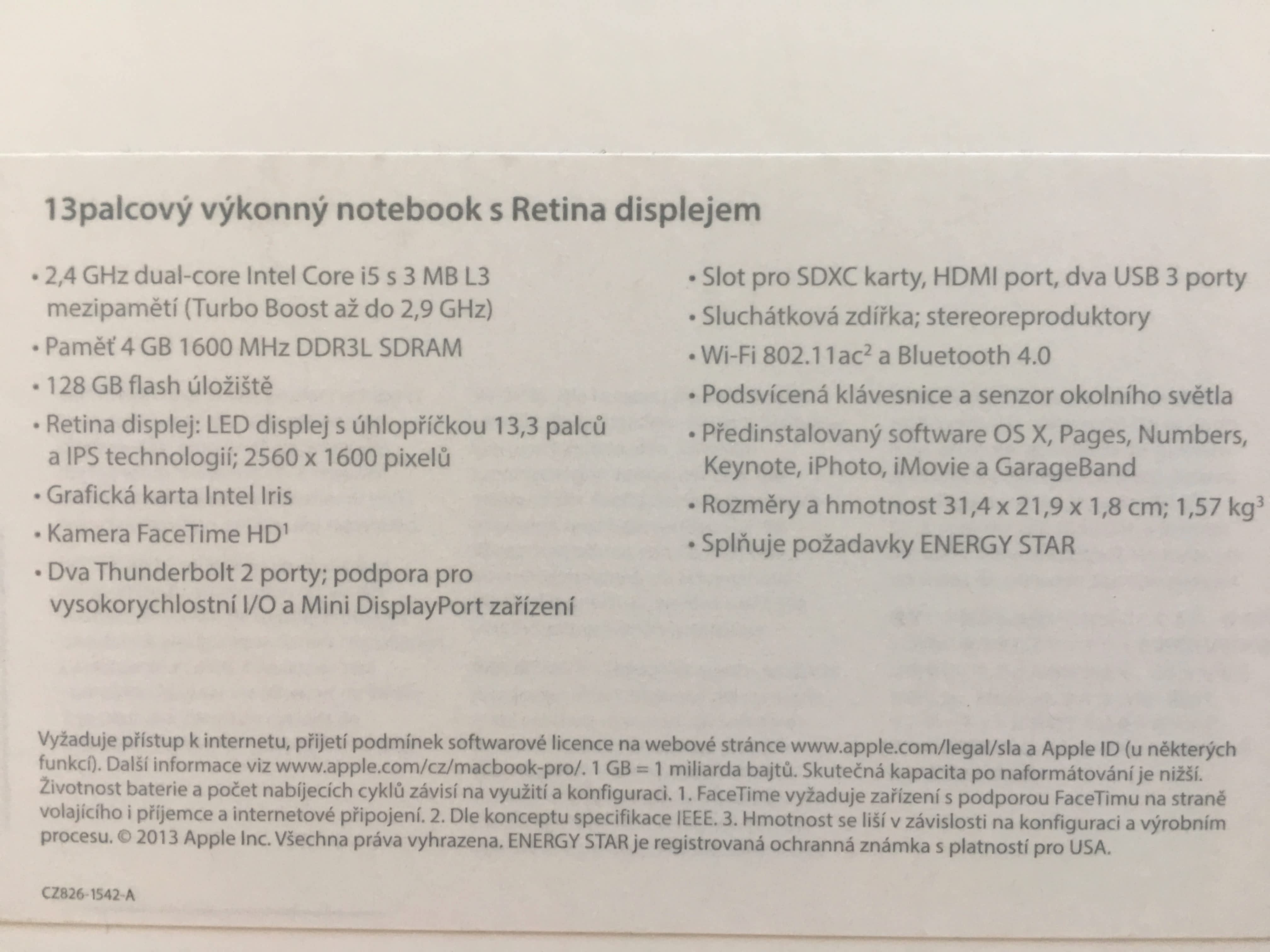 nabízím svůj Macbook Pro 13" retina (kompletní specifikace na foto)