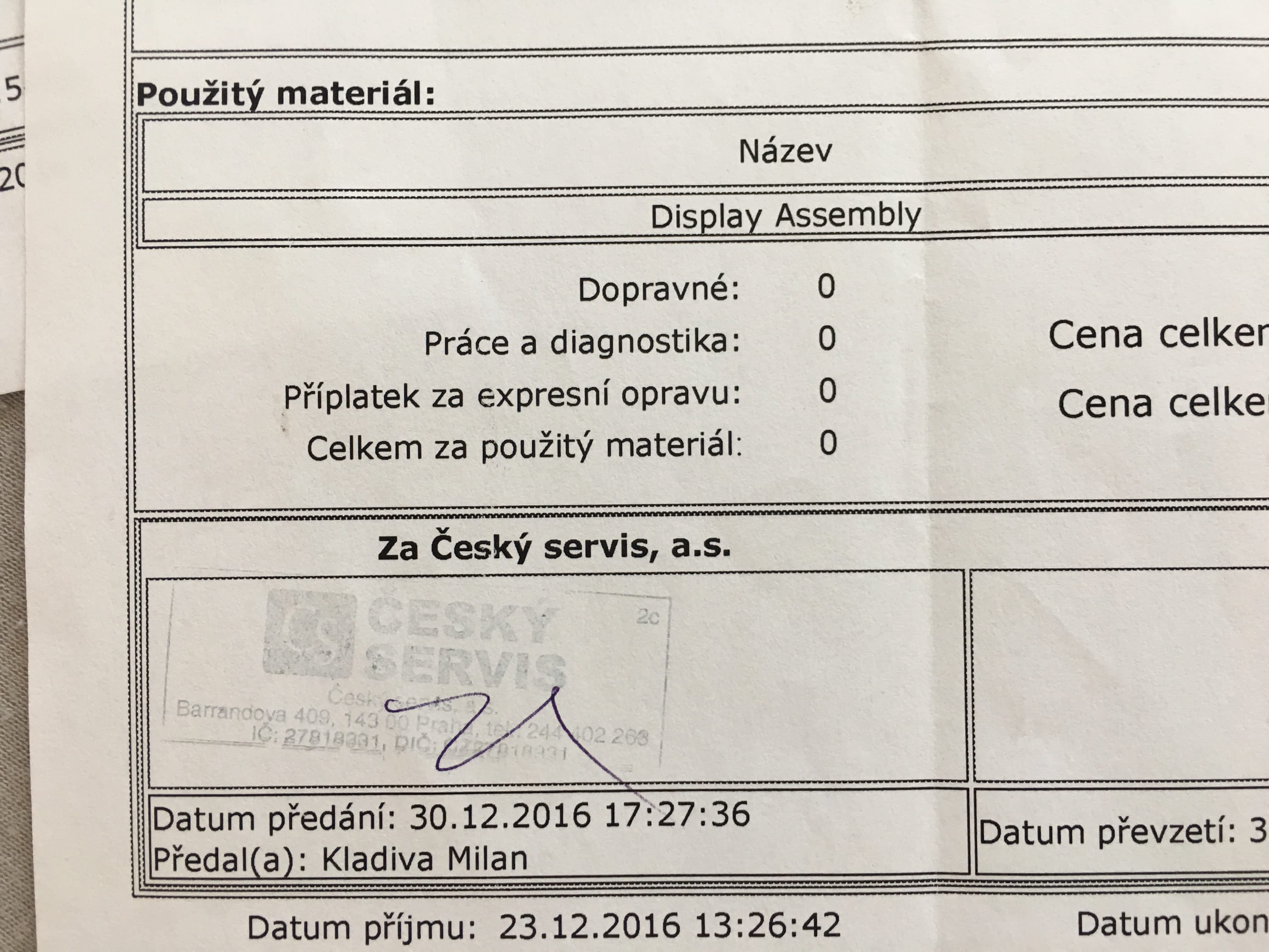 30.12.2016 byl na MacBooku vyměněn displej v rámci garance protože se loupala antireflexní vrstva.