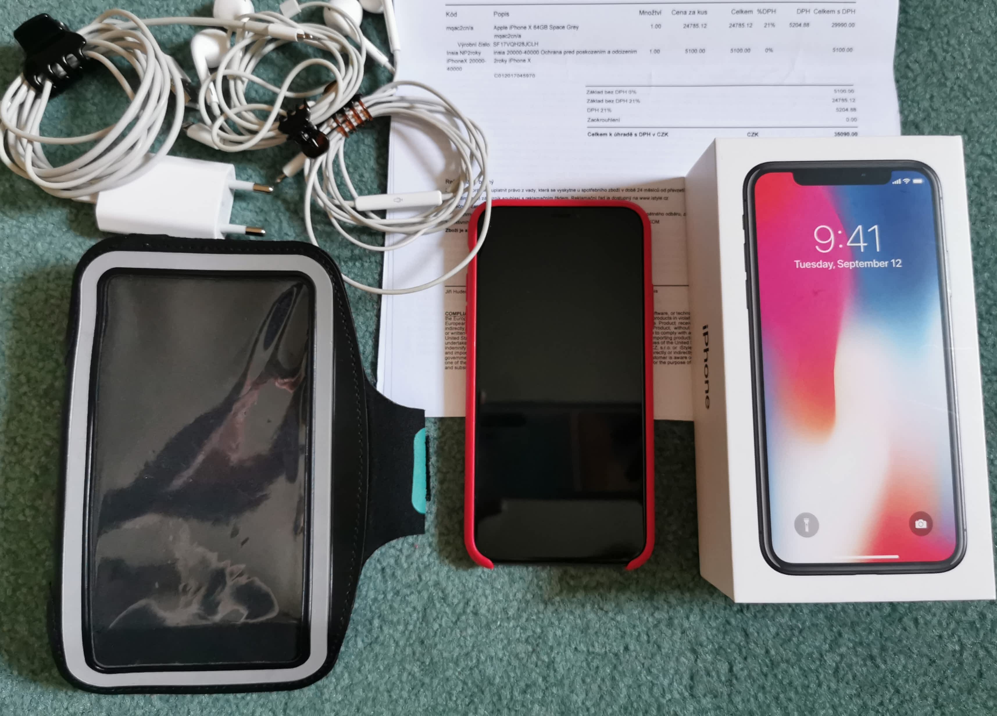Prodám iPhone X 64GB Space Gray v záruce do 1/2 prosince vč. nečerpaného kompletního pojištění. Bez jakýchkoliv vad! S účtem o koupi v iStyle, kompletním nepoškozeným balením a příslušenstvím. Vhodné tedy i jako dárek. Navíc dále: druhá originální sluchátka (používaná, původní od telefonu jsou úplně nová), další neoriginální nabíječka a další kabel (pro nabíjení třeba do kanceláře a auta), originální Apple červený obal a obal na rameno (na běhání).