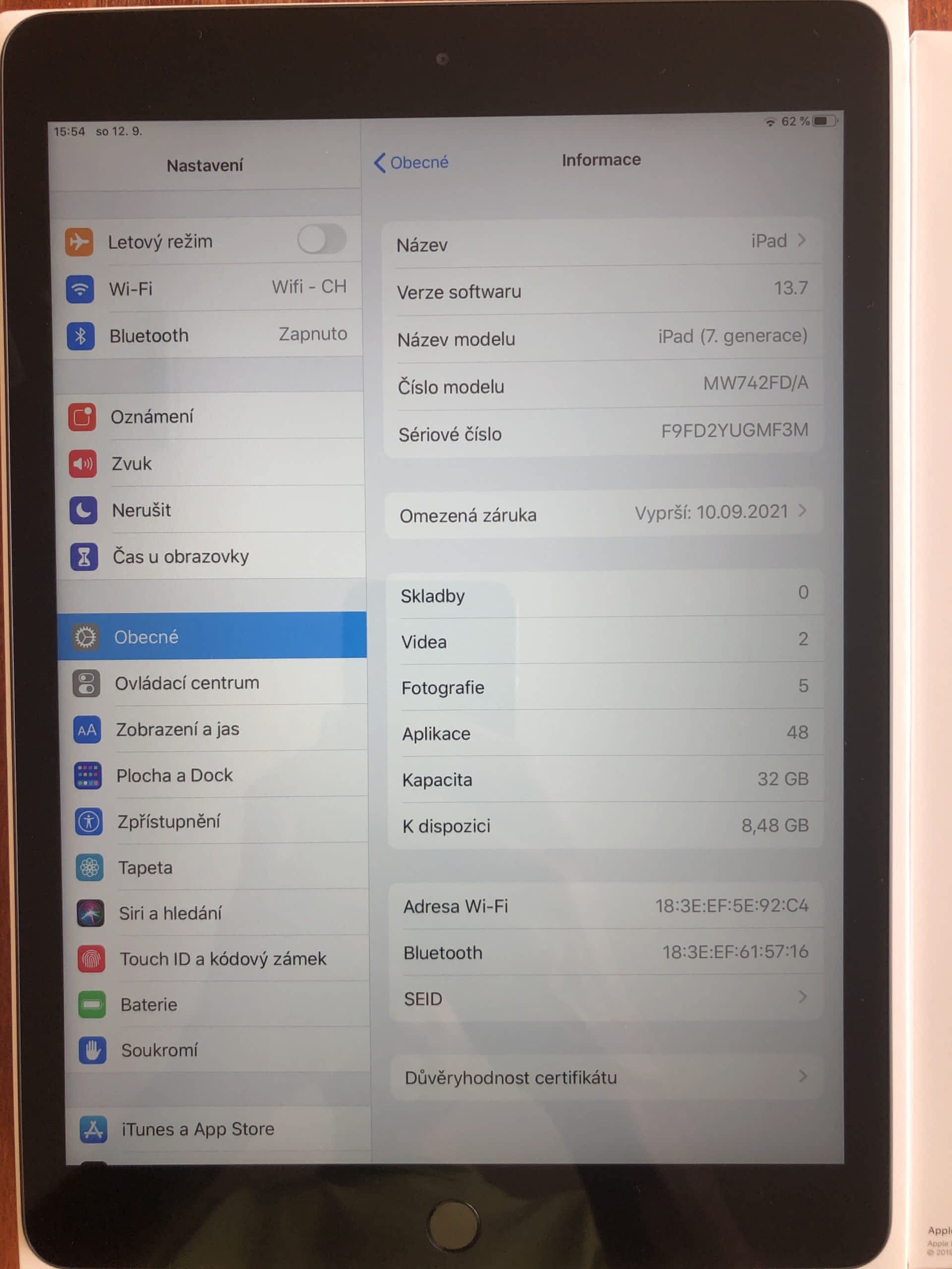 Prodávám zánovní tablet Apple iPad 2019 (7th Generation).