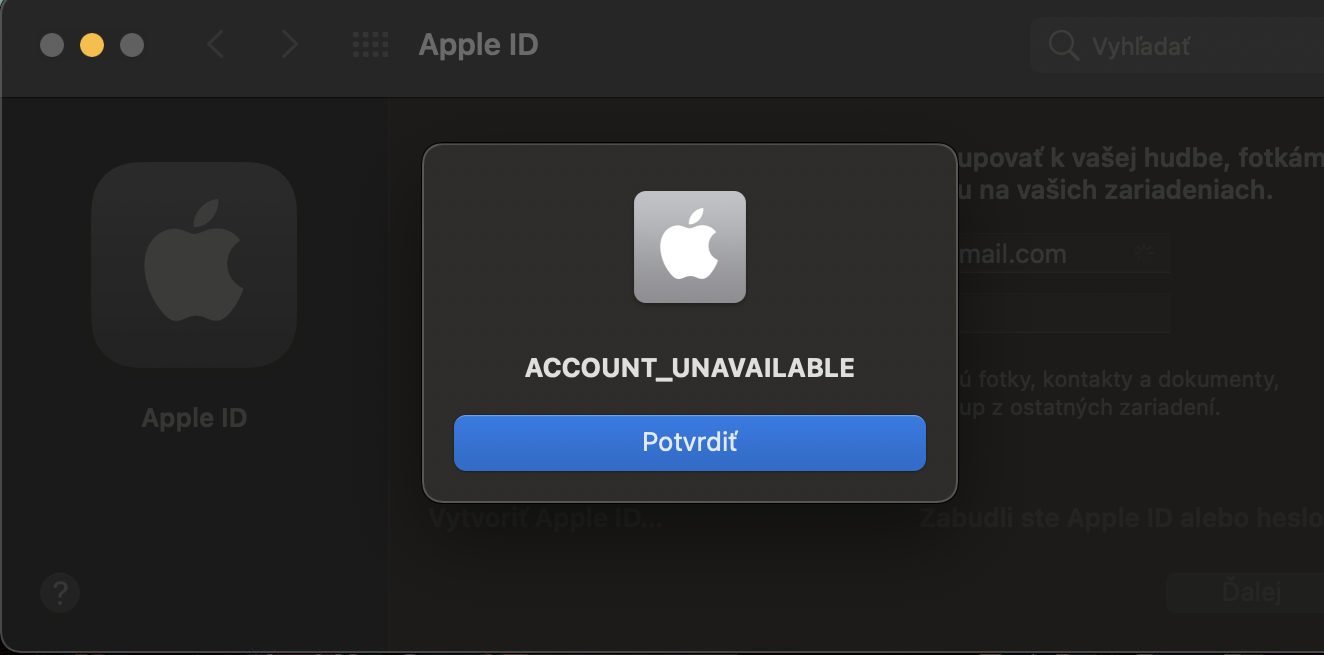 Zdravím kúpil som nový macbook air po úvodnom zapnutí a nastavení všetkých vecí vštko funguje ako má, až na jednu vec a to že sa ni nedá prihlásiť cez apple id a stále píše tento error, na stránke apple sa mi ide normálne prihlásiť do apple id a ked sa chcem príhlasiť napr do app store tak to píse tento error.Stretli ste sa už niekto s podobnym problémom?