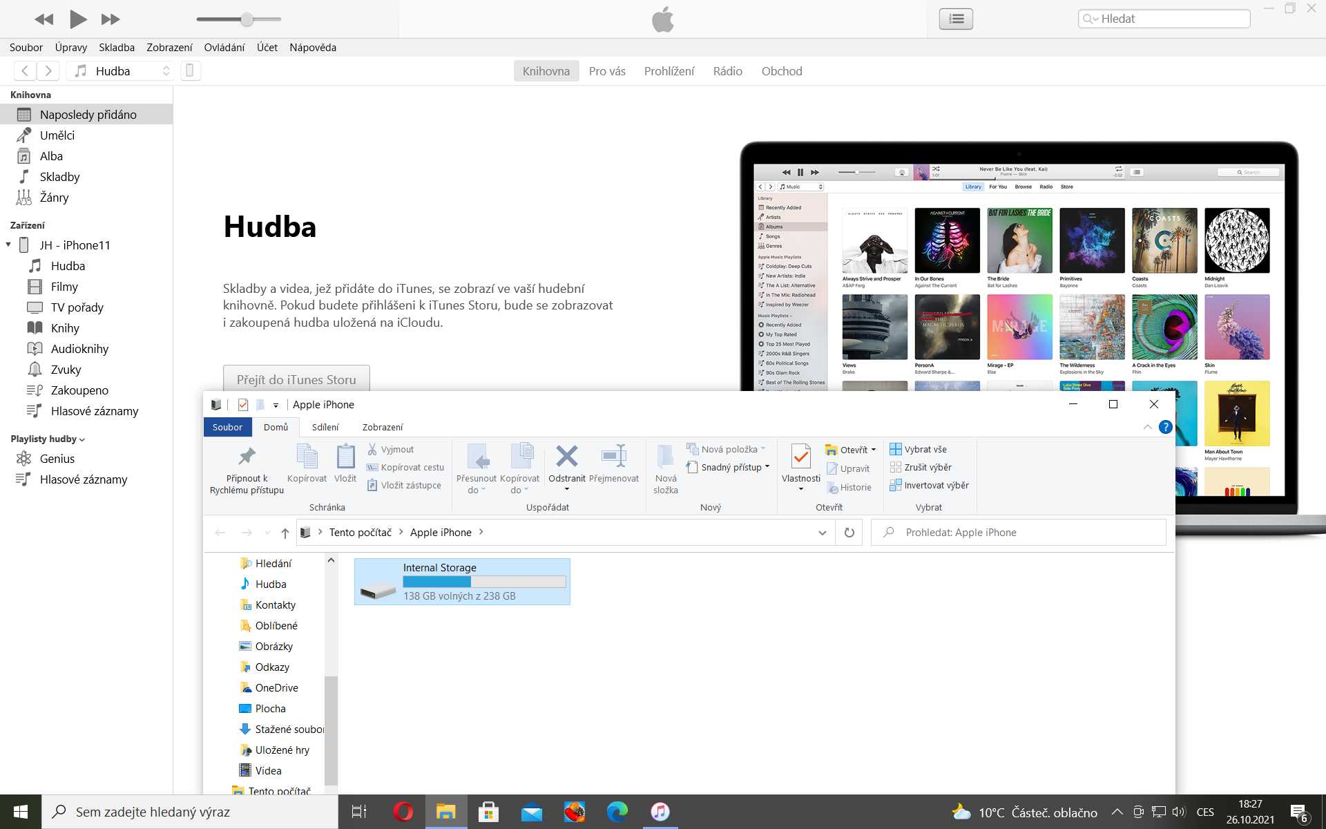 Musíš aktualizovat ovladače v PC. Najdi si na netu nějaký program na to. Musíš to vygůglit😉. Odinstaluj iTunes, ale podle návodu. Postupně tak jak radí Apple. Pak si iTunes nainstaluj do PC přímo z obchodu aplikací ve Windows.Děkuji za nápovědu. Udělal jsem to přesně. iPhone se ukazuje jako disk, při otevření v iTunes ukáže všechny základní údaje o telefonu, neukáže však obsah, tedy ukáže v KNIHY pouze příručky iPhone a Apple Watch. To samé i na notebooku. přesto děkuji.