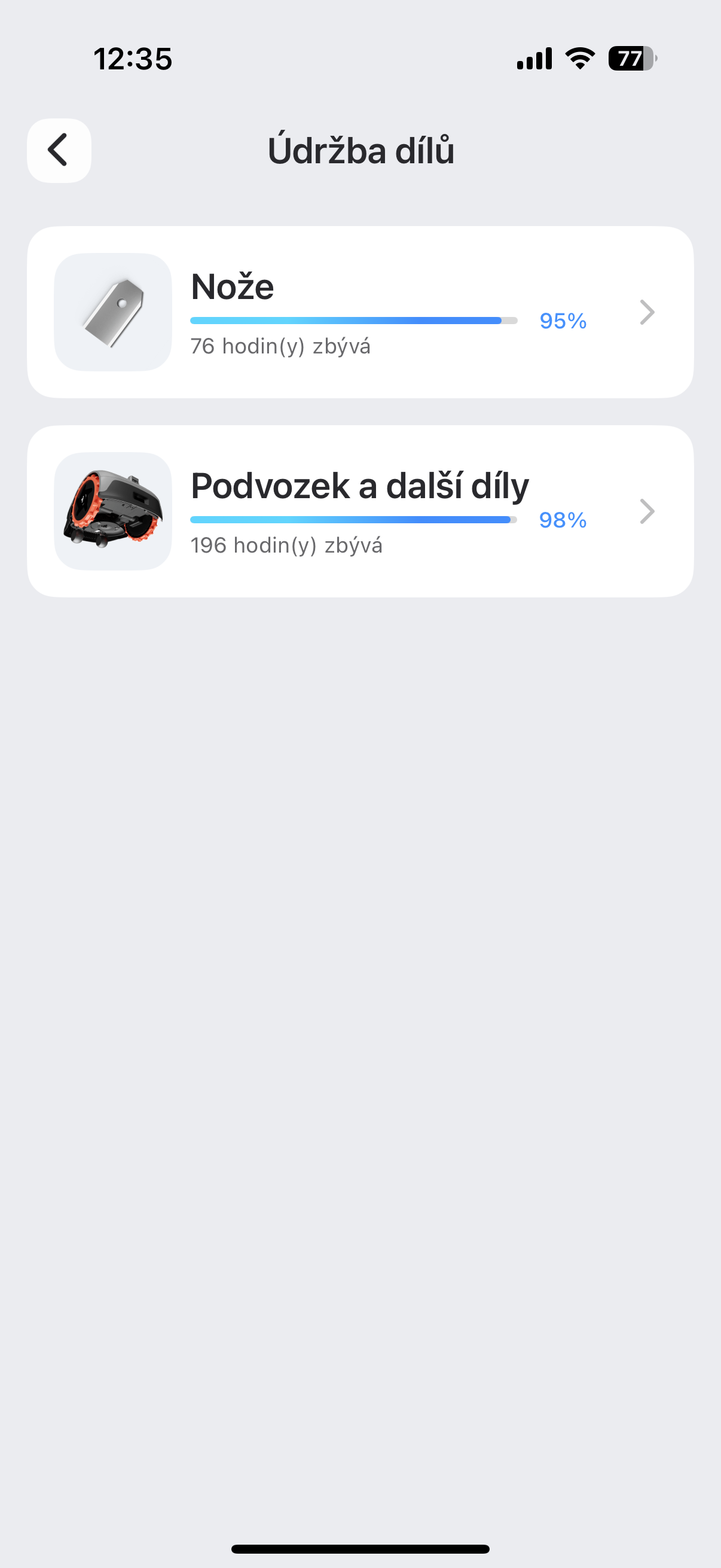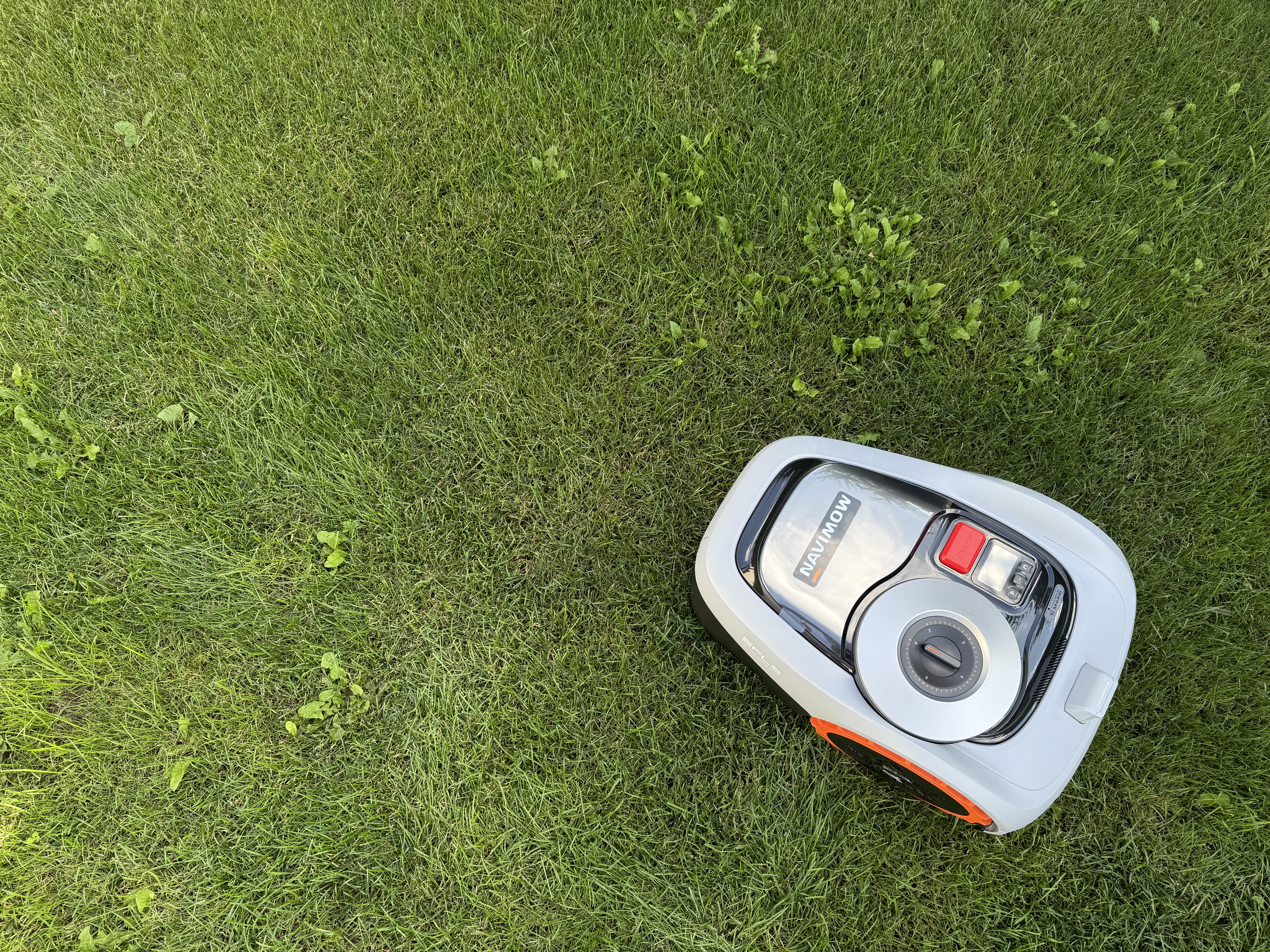Não sou especialista em grama, mas devo admitir que os resultados são perfeitos – a grama é cortada com precisão e, principalmente, de forma consistente, o que é uma grande vantagem. Sinceramente, não consigo imaginar um resultado melhor, e o que o Navimow demonstra me parece perfeito. Graças ao sensor visual, o cortador consegue cortar até as bordas, e o único lugar onde às vezes você precisará usar a tesoura são os cantos, onde podem ficar alguns talos. Caso contrário, nas bordas da cerca ou em outros obstáculos no jardim, o cortador pode chegar bem perto – os talos ficarão. maxpelo menos meio centímetro da borda, o que você teria que lidar com um aparador de grama de qualquer maneira ao cortar a grama manualmente. Graças às rodas off-road, o cortador não fica preso e devo dizer que ele realmente dirige como um trator. Mesmo se você tiver um pedaço de lama ou algo assim, o cortador passará sem problemas, mesmo em um declive. O nível de ruído é de apenas 58 dB, o que é padrão e, por exemplo, mesmo os nossos, que têm um cortador básico da Mountfield, não têm um mais alto. Então é ótimo que você possa cortar a grama à noite com a janela aberta e o cortador não te incomoda. Também gosto que o fabricante tenha pensado na manutenção. Você pode lavar o cortador com uma mangueira, incluindo a parte inferior - é até um procedimento recomendado. Ele então notificará você sobre a necessidade de limpar ou substituir as lâminas. 12 lâminas novas, ou seja, quatro conjuntos incluindo parafusos, custarão cerca de 450 CZK. Cada conjunto dura 80 horas, então você tem um total de 320 horas de corte por 450 CZK.