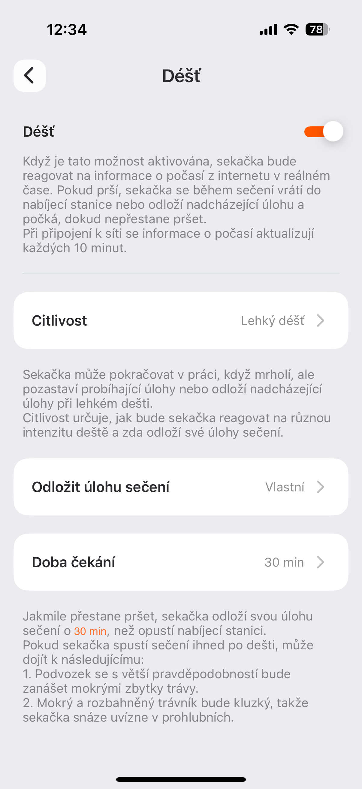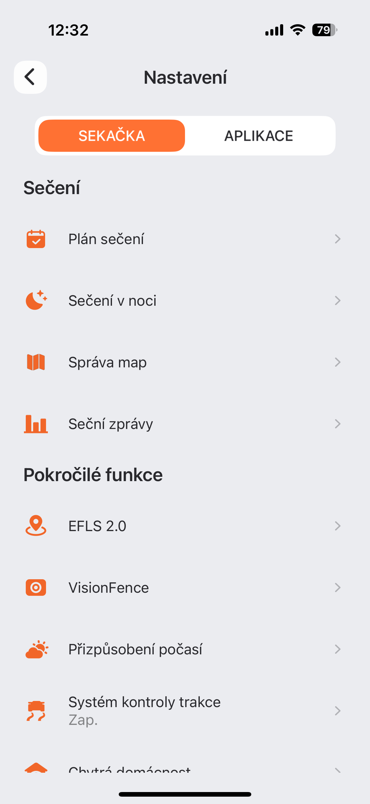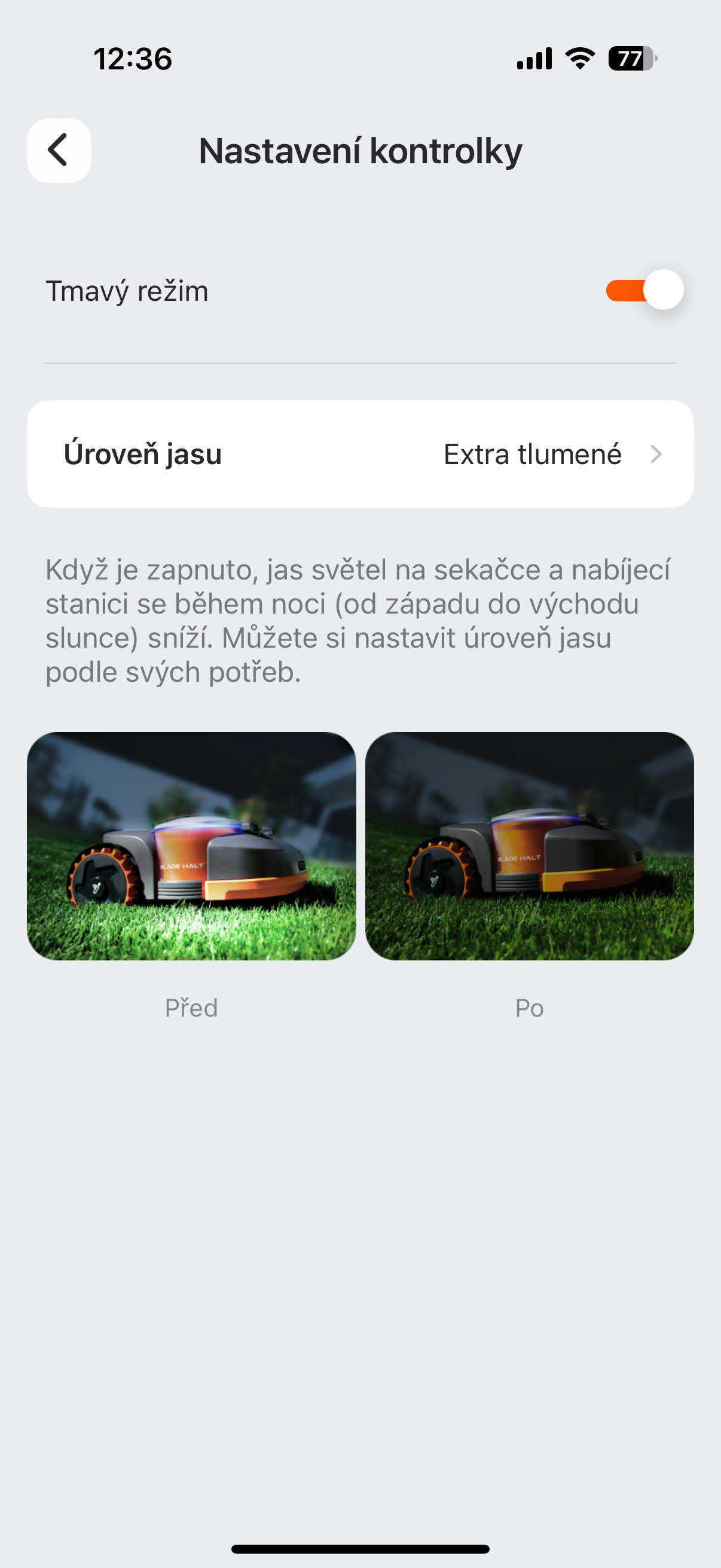 Há também a opção de definir como o cortador de grama deve se comportar ao detectar um animal – se deve considerá-lo um obstáculo normal que ele simplesmente contornará ou se deve mudar completamente sua rota para, por exemplo, não perturbar seu cão idoso tomando sol no jardim ao passar perto dele. Aliás, o cortador de grama pode detectar obstáculos e evitá-los, graças a um sistema de detecção visual chamado VisionCerca. Assim, se seus filhos esquecerem uma bola no meio do gramado ou se você deixar um ancinho ou algo assim lá, o cortador não passará por cima dela nem a atingirá, mas a contornará elegantemente. Curiosamente, você pode ativar o modo noturno – nele, porém, o cortador não se dirige até as bordas porque tem uma detecção mais fraca, e também reduz automaticamente a potência para não incomodar os animais que podem se mover pelo jardim à noite. Em suma, os cavalheiros e as damas da Segway são atenciosos com a natureza em todos os sentidos. Além disso, no aplicativo, você encontrará, por exemplo, a opção de ativar o controle de tração para que as rodas não derrapem, ou a personalização do clima, onde você determina o que o cortador deve fazer em diferentes condições. Você pode definir a quantidade de chuva que deve chover para interromper o corte ou a força do vento para interromper o corte. E isso não é tudo – há uma infinidade de gadgets. Há também a opção de encontrar o cortador usando um serviço semelhante ao Find My iPhone, ou limitá-lo parastorem, de onde, se chegar lá, começará a buzinar alarm e será bloqueado automaticamente, exigindo que você digite um PIN.